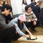 “We figured it was a matter of who got to the middle first, so we focused on maximizing torque and acceleration,” said team member Allison Chuang, who, along with teammates Christopher Yang and Jason Zhao, advanced through four levels of the competition bracket, defeating teams Tortoise and Sexy Subaru in the final round-robin match in front of a silent, standing-room crowd.