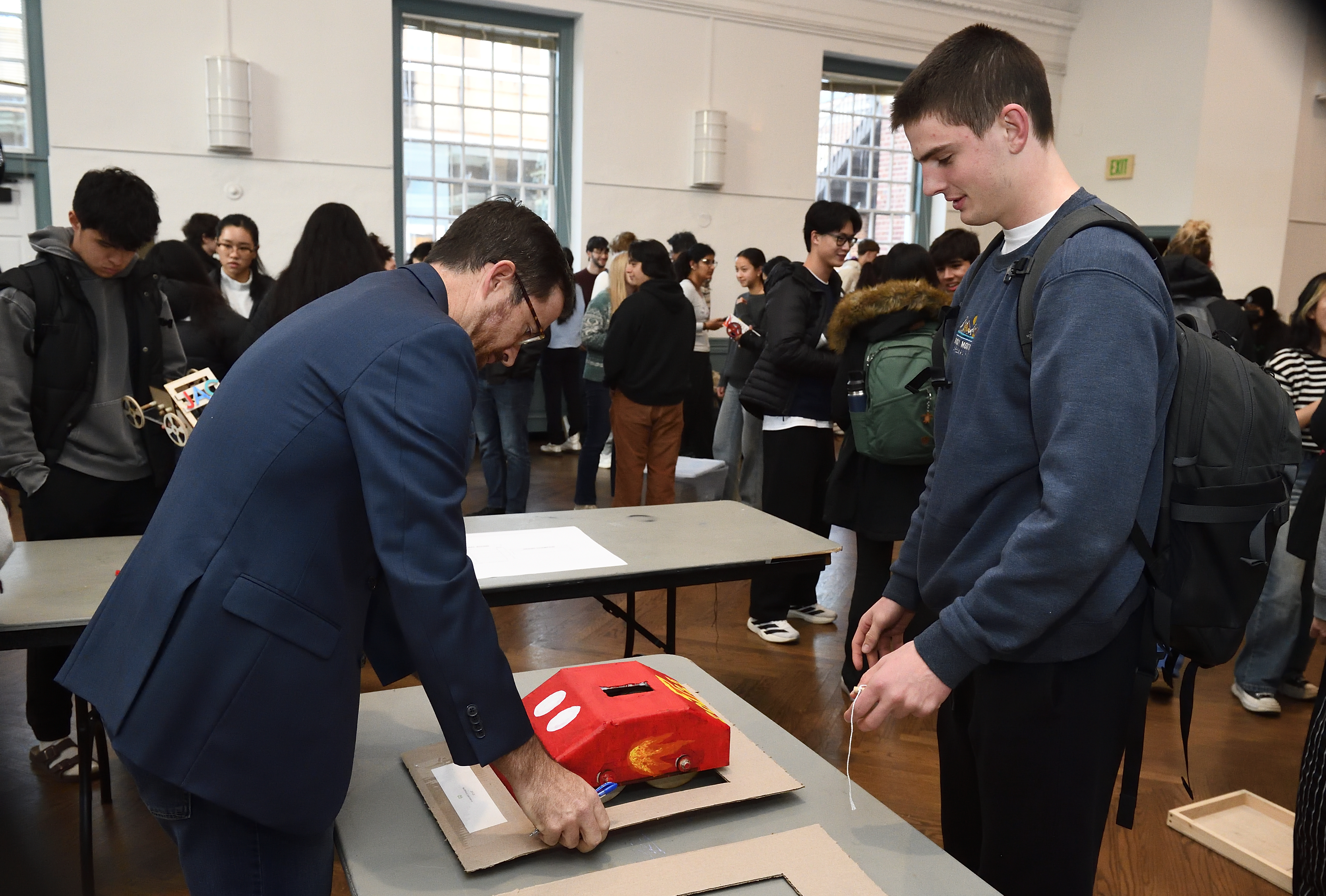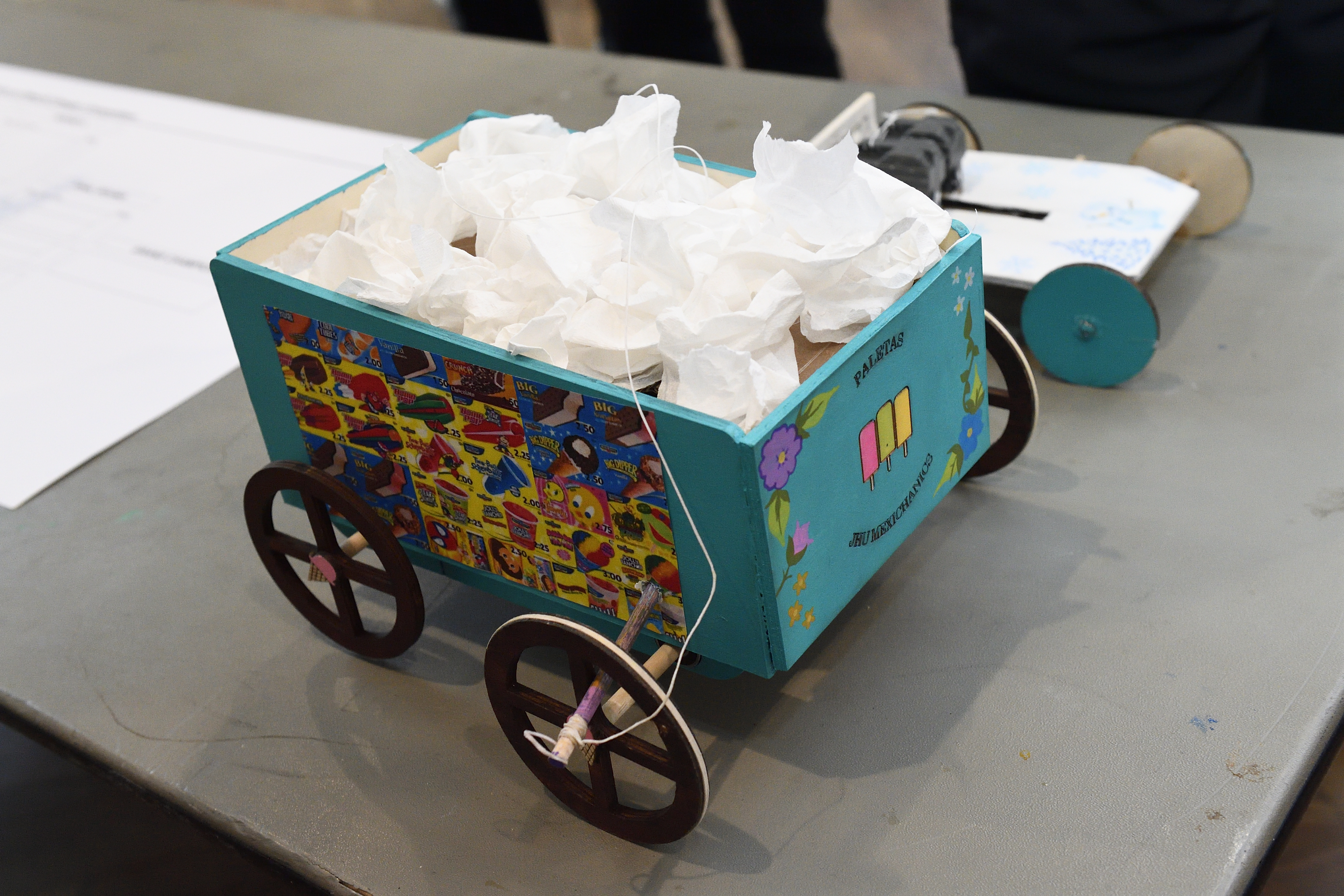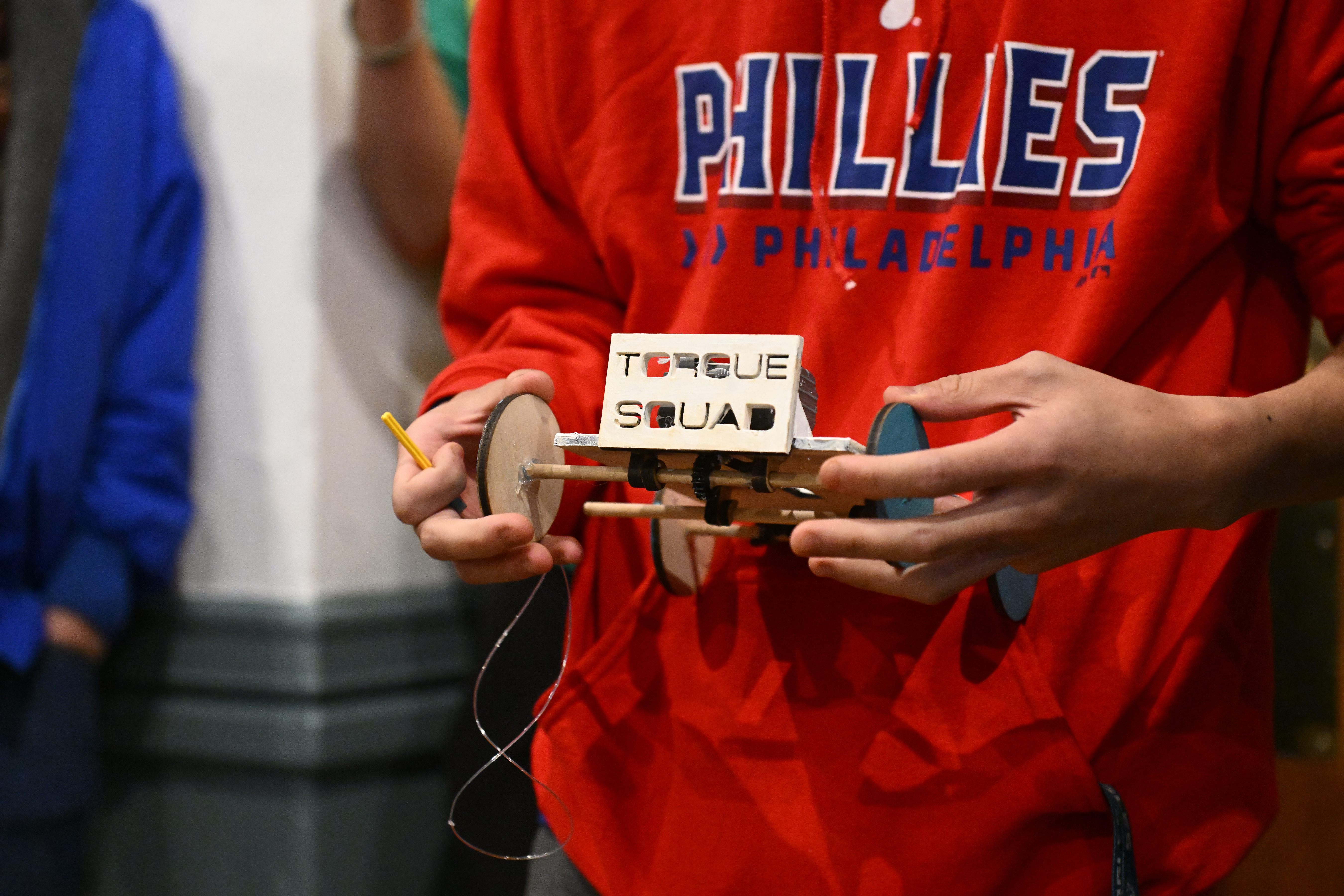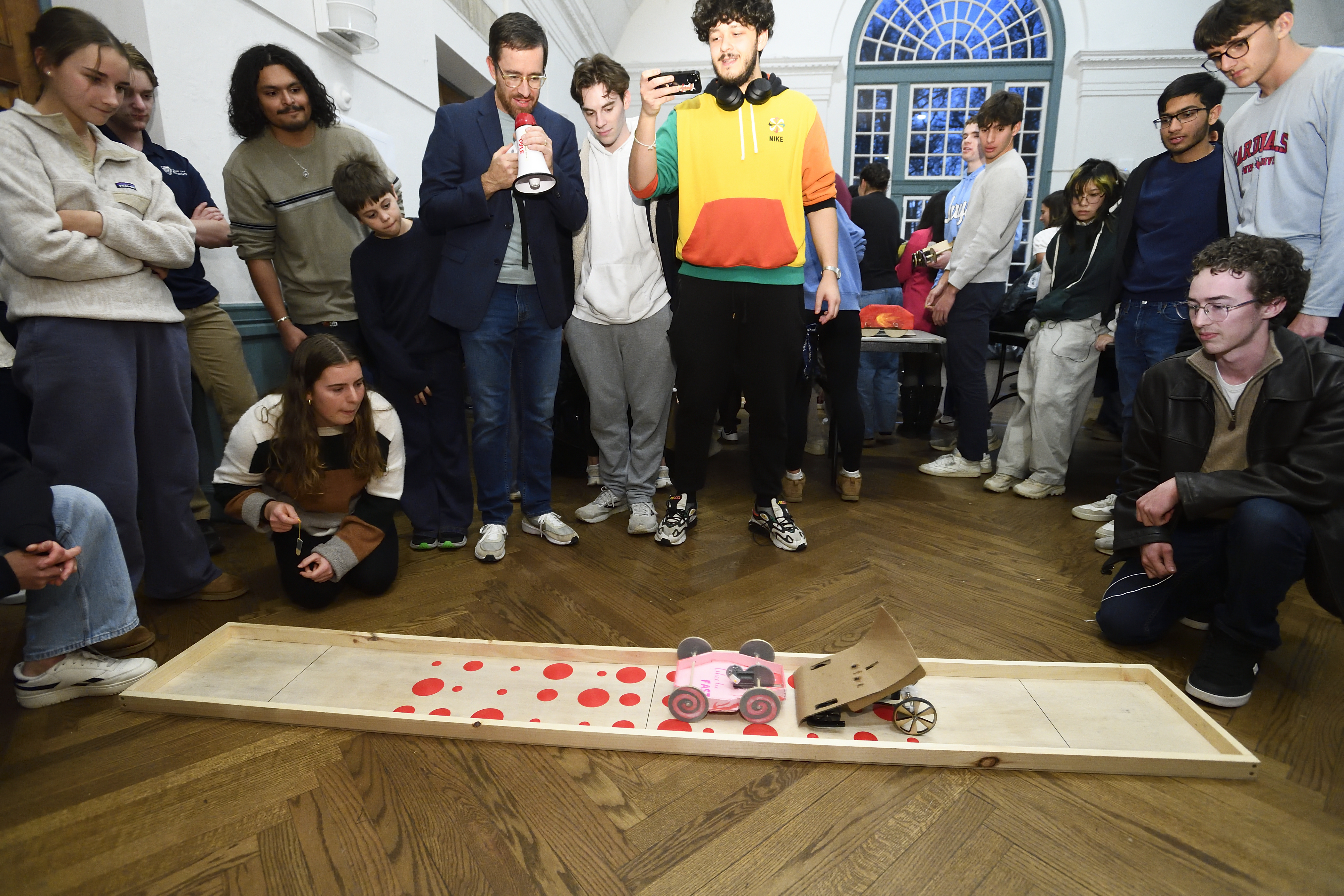 The competitors were tasked with designing and building a vehicle powered solely by a wind-up spring motor activated by pulling a string. As long as the car had at least three wheels and met the size specifications, the teams could be as creative as they wanted. As is customary for the event, the vehicles’ designs—from a duck to a British Flag to an ice cream truck—were as creative as the teams’ names, including Wheelie Fast, Baltimotor, Mexicanics, and Kermit Collider.